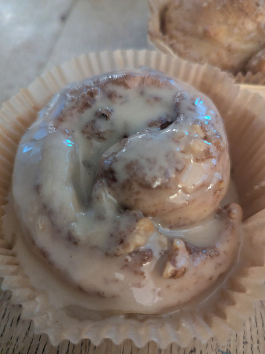 Walnut Praline Cinnamon Roll with Vanilla Glaze
