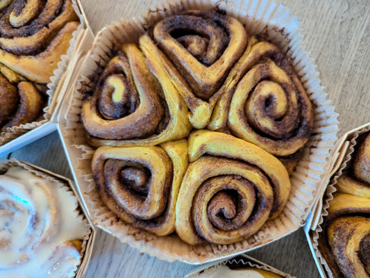 Cinnamon Rolls with Cream Cheese Icing - 5 singles served in our classic wooden tray