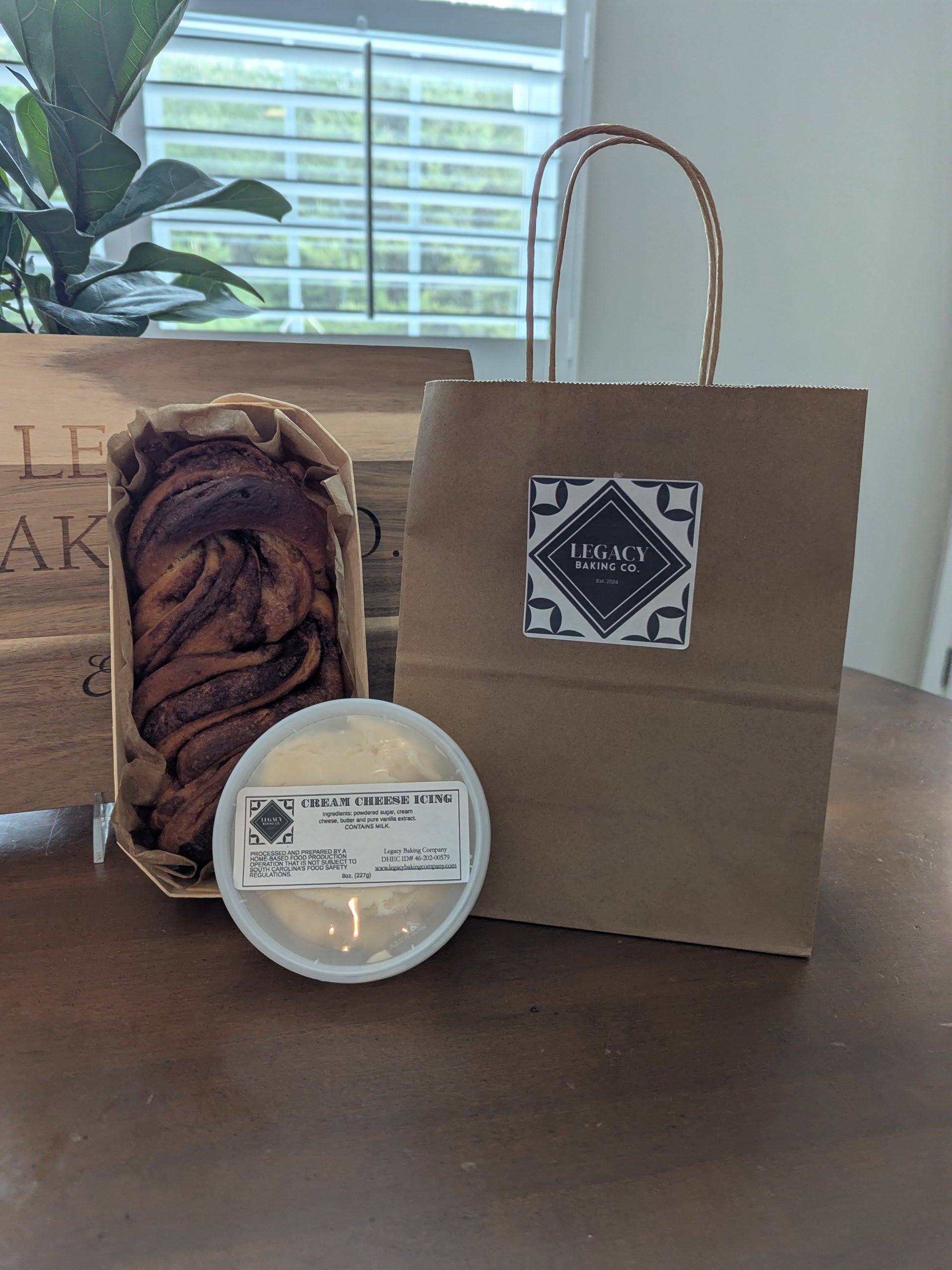 Our Braided Cinnamon Loaf is braided by hand and quite a pleasure to look at. Go ahead, take a deep gaze of wonder at her beauty then cut a slice. Your tastes buds will be watering with the scent of organic cinnamon, real butter and unbleached organic flour. We believe you will love our twist on this yummy favorite. So much so that we include an 8 oz. container of fresh cream cheese icing with every order.